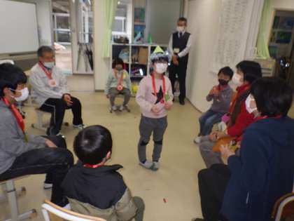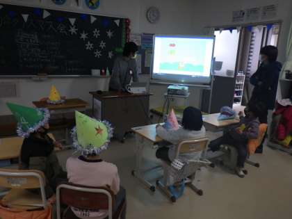 みんなで楽しくとんがりぼうし作ったあと、6年生の子の司会でクイズをしたり、フルーツバスケットをしたりして楽しく交流しました。