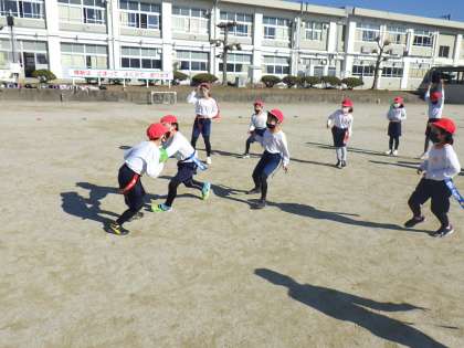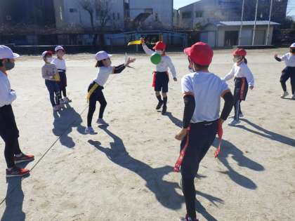 タグラグビーは、タックルのかわりに腰につけたタグを取り合い、ボールを相手陣地に運ぶゲームです。