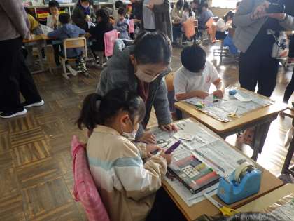 2年生は、1年生を招待して「おもちゃ作り教室」を開きました。