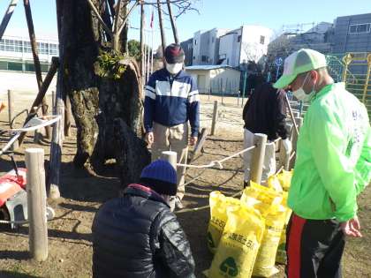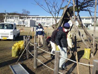 地域学校郷土本部のみなさんに、せんだんの木に追肥をしていただきました。
