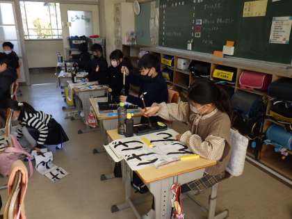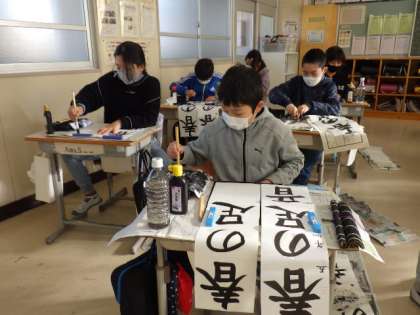 冬休み明け、最初の授業は「校内書き初め大会」でした。