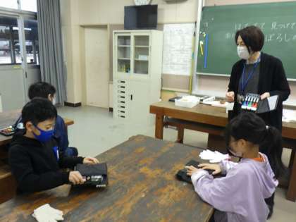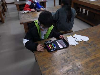 子どもたちは、新品の彫刻刀を前にワクワクしている様子でした。