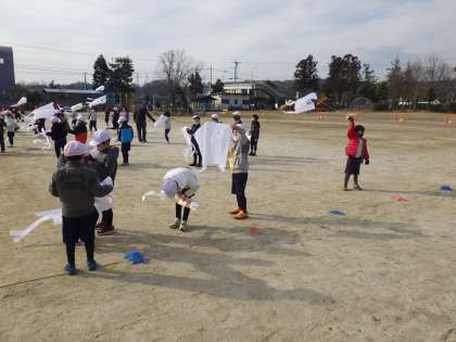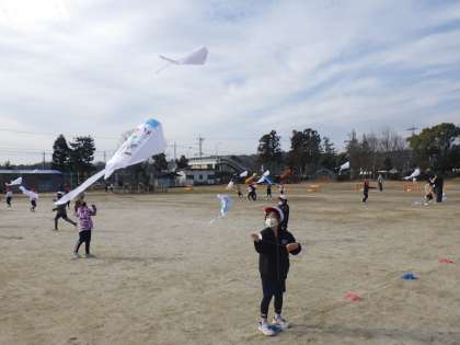 寒い日ですが、北風が強く吹いていたので、たこあげにはよいコンディションでした。