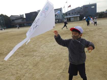 笑顔満面でたこあげをする1年生はとてもかわいかったです。