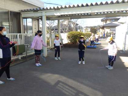 せんだんタイムには、なわとびをする子でいっぱいです。