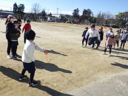 6年生に教えてもらいながら練習する子や長縄で遊ぶ子もいます。