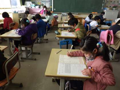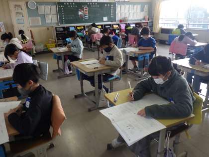 どの学級でも集中して、テストに取り組んでいました。
