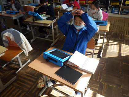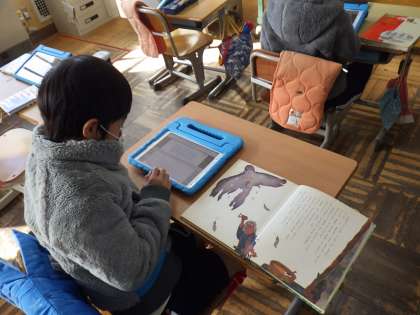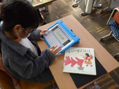 手際よく昔話の本を写真にとり、発表ノート上に貼り付けて、紹介文を打ち込んでいました。