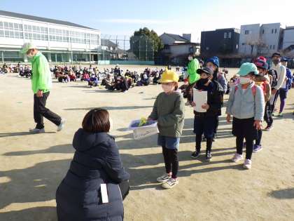 本日の一斉下校の時間に全校の児童にあいさつをしていただきました。