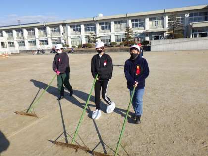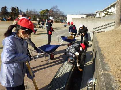 側溝そうじとグラウンドの整地をチームに分かれ、実行委員の指示で手際よく作業しました。