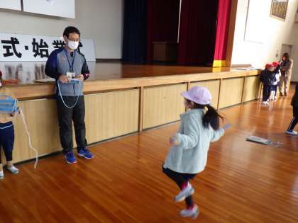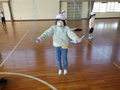 1年生の体育では、なわとびを学習しています。