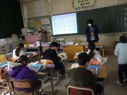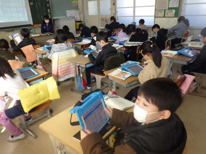 説明文のワードを学習用タブレット上で動かしながら、文の構成について考えました。