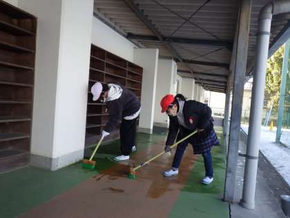 極寒の中の愛校作業(6年生)