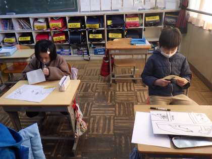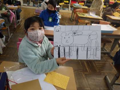 2年生の図工では、版画の下絵を制作していました。