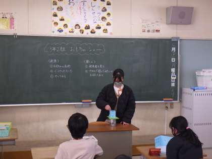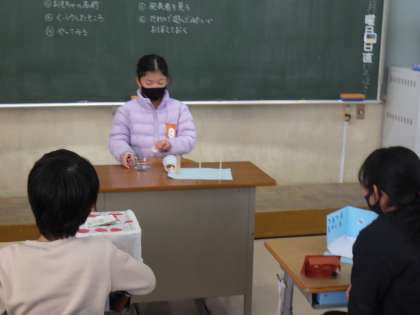 出来上がったおもちゃをクラスのみんなに紹介します。