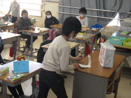 3年生の理科では、これまでに習ったゴム、音、電気、磁石などを使っておもちゃ作りをしています。