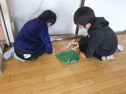 福祉美化委員会の呼びかけにより、いつもは手が回らない、扉のレールなどを掃除します。