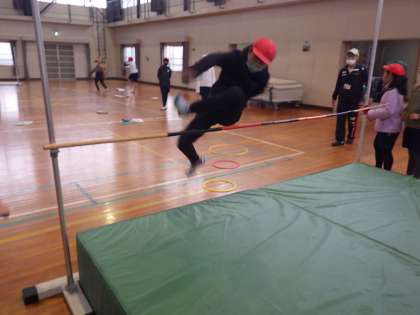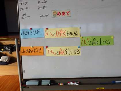 踏み切り足は、「パーン」と力強く、振り上げ足は「エイッ」と高く引き上げるを目標に取り組んでいます。