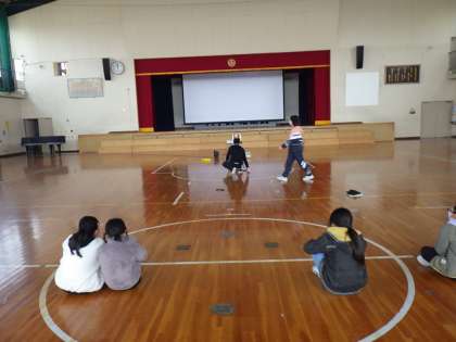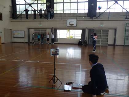 5年生は、体育館で映像や音声のチェックをしながら、リハーサルを行いました。