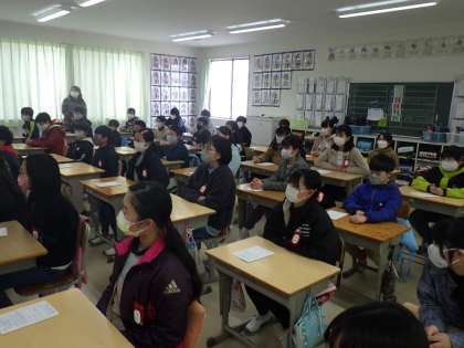 説明を聞く、子どもたちの表情は、真剣そのものです。いよいよ、中学校へ進学するのだと実感がわいてきたようです。