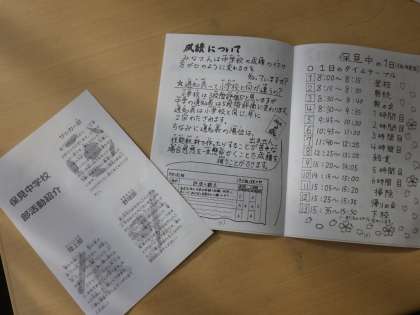 入学説明会が中止となりましたので、保見中学校の生活や学習、部活動などについて、生徒の作ったパンフレットやビデオなどで紹介をしてもらいました。