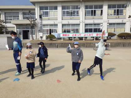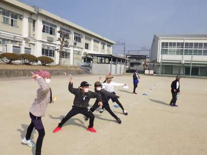 4年生は、学級レクリエーションとして紙飛行機大会を運動場で行いました。