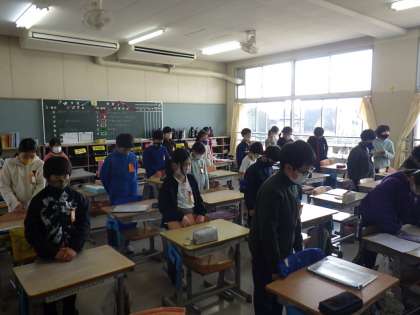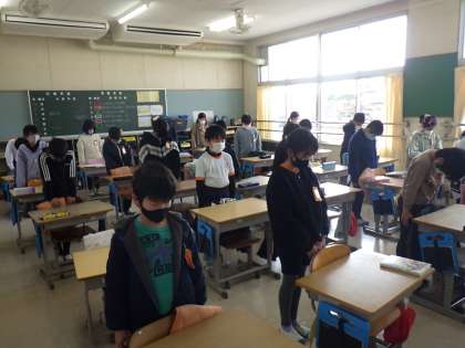本日は、教頭先生のアナウンスのもと、黙とうをささげました。