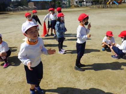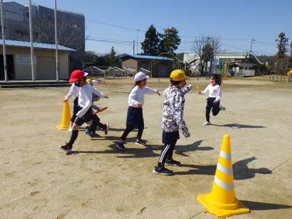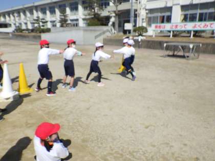 1年生は、体育でリレーをしました。