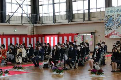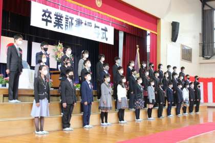 卒業証書授与のあと、卒業生が会場にしっかりと響く声で立派に呼びかけを行いました。