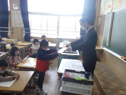 最後の学級活動では、担任より一人一人に通知表「いなほ」が手渡されました。