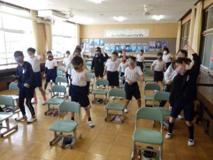リズムに合わせて体を動かしたよ(5年生)