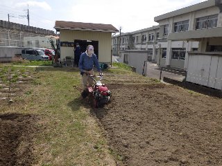 毎年、野菜名人さんが本校の畑でスイカを作り、夏場に全校児童でスイカをいただきます。今日は、野菜名人さんがスイカの畝をつくりました。後日、スイカの苗を植えて、児童がその成長を観察していきます。