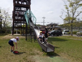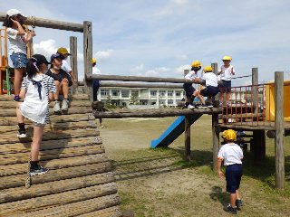 休み時間は遊具で遊んでいるよ