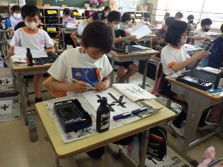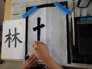 4年生の書写では、「林」という字を練習しました。左右のバランスや、横棒の角度、などに気をつけて練習しました。