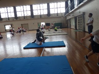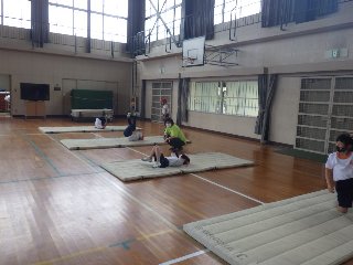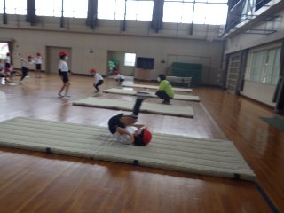 3年生の体育では、マット運動に取り組んでいます。今日は、今までの復習として前転、後転に挑戦しました。前転はきれいに回れますが、後転には苦戦していました。