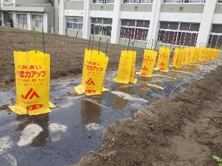 野菜名人さんが、スイカの苗を植えてくださいました。今はまだ小さな苗ですが、この後ぐんぐん大きくなると思います。夏に全校児童で食べるのが楽しみです。