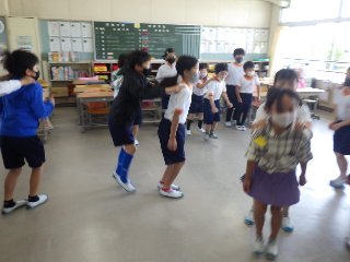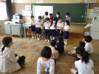 伊保小学校では、1〜6年生の縦割り班活動として、フレンド班があります。4/22(金)の2時間目に、「フレンドはじめの会」があり、各グループで1年生の歓迎会を行いました。全員が自己紹介をした後、6年生が考えたゲームで楽しく遊びました。ゲームには、ジェスチャークイズ、宝探し、絵しりとり、バクダンゲーム、猛獣狩り、シロクマのジェンガ、ペアで新聞紙の上に乗りじゃんけんするゲームなどがありました。一瞬でみんなが仲良くなれました。