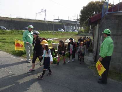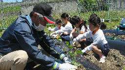 伊保小学校では、地域の方々のボランティアによって、児童の健やかな成長が支えられています。写真は、見守りボランティアの方と、学校園の栽培活動のボランティアの方です。児童に代わって、感謝の言葉を述べさせていただきます。ありがとうございます。