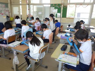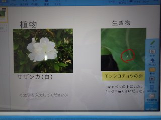 4年生の理科では、「生物の春のようす」を学習しています。4年生は校庭の生きもの(虫など)と植物を学習用タブレットで写真で撮り、それをタブレットでまとめました。