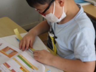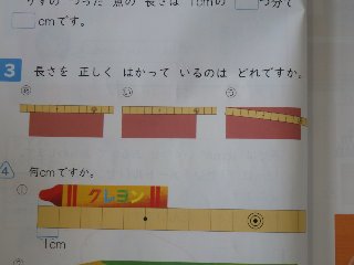 2年生の算数では、長さを勉強しています。今日は、ものさしの使い方について、どのはかり方が正しいのか、考えました。
