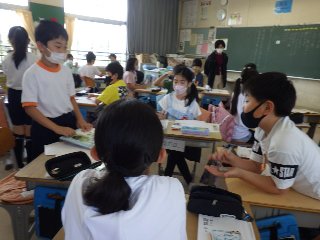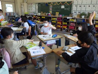 4年生の国語では「確かめながら話を聞こう」を学習しています。今日はグループになり、代表者の選んだ絵本の紹介を、確かめながら聞きました。「聞きたいことの中心を考えて聞く」「話を聞いて質問をする」などして、より詳しく聞きとっていました。