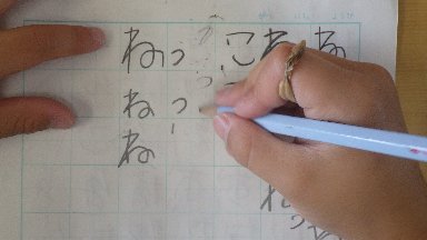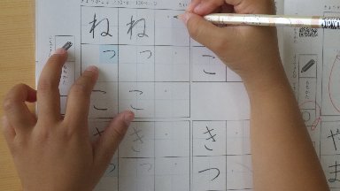 1年生の国語で促音を学習しています。今日は、「ねこ」と「ねっこ」をかき分けました。1マスの中のどこに小さい「つ」を書いたら良いかも考えて書きました。