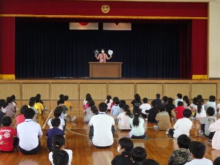 伊保小学校では、学習用タブレットを使ってのオンライン全校集会を行ってきましたが、感染状況も落ち着いてきたことから、6/14に体育館で全校集会を行いました。