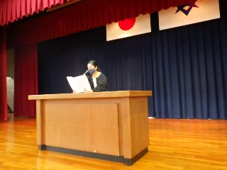 校長先生のお話を聞いた後、6/18(土)に保見交流館で行われる「第22回保見地区社会を明るく運動」で、学校を代表して作文を発表する児童が、作文を読みました。家族や社会を明るく、前向きにしていきたいというすばらしい意見発表でした。