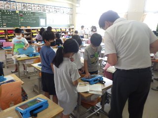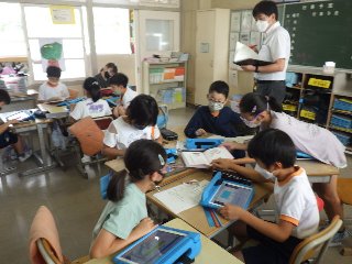豊田市教育委員会 学校訪問があり、市教委のみなさんが各クラスの授業を参観しました。子ども同士が意見を出し合い、学び合っている姿や、積極的に学習用タブレットを使って学び合う姿を、褒めていただきました。