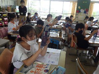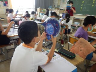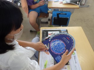 4年生の理科では、「星の動き」について学習しています。今日は星座早見盤を使って、夏の星座や夏の大三角を探しました。