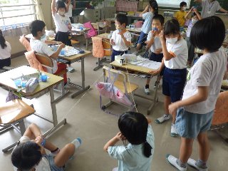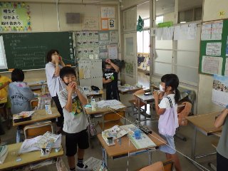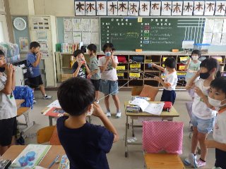 3年生の理科では、「音の伝わり方」を学習しています。今日の授業では、糸電話を使って、「音が伝わるとき、糸はふるえているか」を確かめていました。2人一組で糸電話でお話をしていましたが、そのうち4人組、6人組で糸を交差させても、音が伝わることを発見していました。
