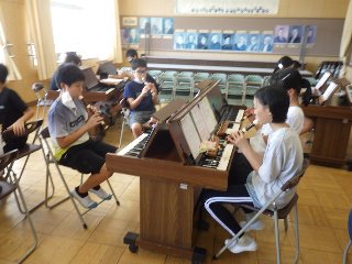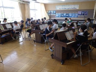 6年生の音楽では、リコーダーの二重奏を練習中です。今日の授業では、「メヌエット」を2つのパートに分け、短い時間で練習をしました。個人練習の後、クラス全体で合わせてみると、見事な二重奏になりました。6年生のリコーダーは、さすが美しい音色でした。