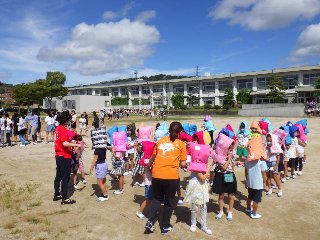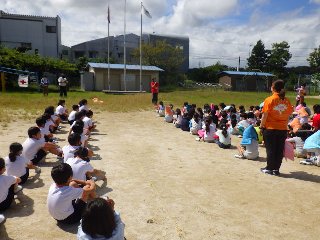 9/6(火)に、今年度2回目の避難訓練を行いました。今回は「家庭科室から出火」という想定で、全校児童が校庭に避難しました。逃げ遅れた児童を、教師が救出する訓練も行いました。今回は校内に4か所ある防火扉を閉め、防火扉の通用口を通る練習も合わせて行いました。全校児童は無言で、真剣に避難することができました。