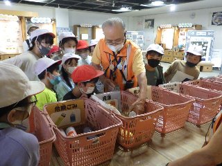 また、体験ブースでは、床に置いてあるゴミを児童が考えながら分別しました。